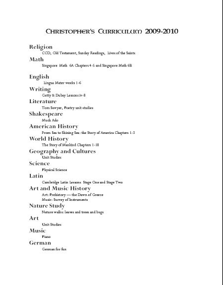 At this point I have the subjects and the books selected from the children for next year. Now I turn my efforts to getting it all organized. I won’t pretend that my way is the only way, or even the best way, it is just the way that works for me so far. And that could change. Many of the ideas I use I have drawn from other people, websites, books, and observation – none of it is really rocket science either.